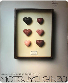 今年のテーマは「ENJOY! 〜体感バレンタイン〜」。 いつも個性的なラインナップで銀座を訪れる人の心を掴む松屋銀座のバレンタイン。ここ数年で変化したバレンタインの楽しみ方をデパートならではのエンターテインメントで展開します。今やバレンタインは本命チョコや義理チョコ選びではなく自分自身が楽しむお祭りなんですよね。 |