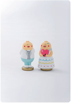 松屋オリジナルフィギュア 幸せを呼ぶ「幸福のブタ」ザ・ファイナル〜私、お嫁に行きます!〜 8階イベントスクエアで期間中、税込3,000円以上(合算可)のお買い上げで先着5,000名様に右側‘幸福のブタの女の子’のプレゼント企画もあり。 |
